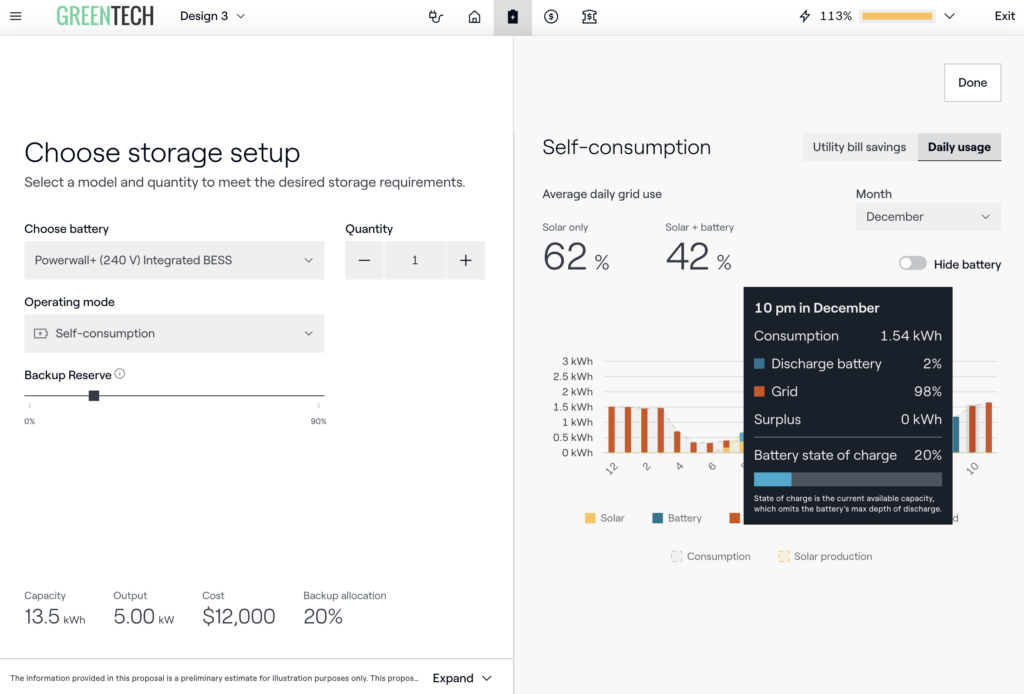 Hourly consumption modeling in Sales Mode lets you explain the ins and outs of just how self consumption works and why it saves the homeowner money, in a visual, easy-to-understand way.